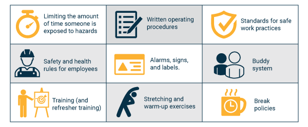 - Limiting the amount of time someone is exposed to hazards.